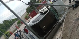 Veículo capota e derruba poste na Avenida Noel Nutels na Zona Norte de Manaus
