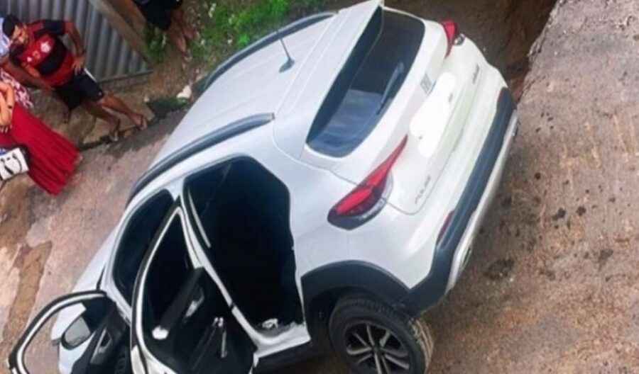 Em Manaus, veículo capota e cai em cratera no Campos Sales