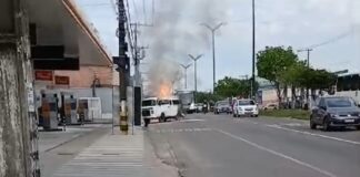 [Vídeo]: Veículo pega fogo no meio de via pública na Zona Norte de Manaus