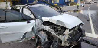 Carro destrói poste em acidente na Avenida do Turismo na Ponta Negra em Manaus
