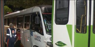 Micro-ônibus bate em coletivo e deixa nove feridos na Avenida Rodrigo Otávio em Manaus