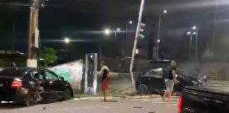 Veículo fica destruído após avançar semáforo e colidir contra carro na Zona Sul de Manaus